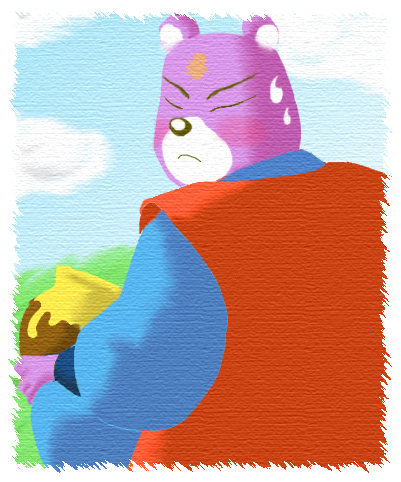 …おやつの時間。クマだけど…独り占めはよくないよね。